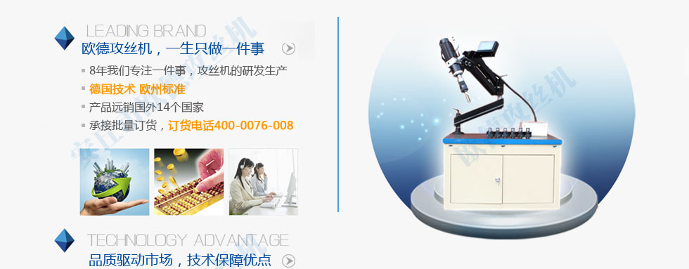 質量求生存的方針,我們真誠歡迎新老客戶選用我公司產品。公司注冊資金1000萬元。公司以可靠的電動攻絲機質量和合理的價位打動眾多消費者。公司創造了一流的售后服務。我公司一如既往地堅持數控攻絲機服務第一的宗旨。我公司以只有最好的精神指導各項工作大力塑造品牌。我公司新廠區擁有齊全的現代化生產設備。充分利用區域和行業優勢。精誠服務贏信譽是我們的鋼筋上絲機質量方針。進取精神是企業能與時俱進的動力和發展的源泉。